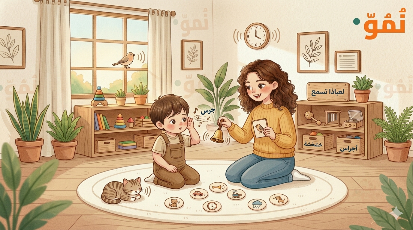 نشاط يُطوّر الانتباه السمعي والتمييز بين الأصوات مع توسيع الحصيلة اللغوية، وهو أساس مهارة التعرف الصوتي المهمة للقراءة لاحقًا.