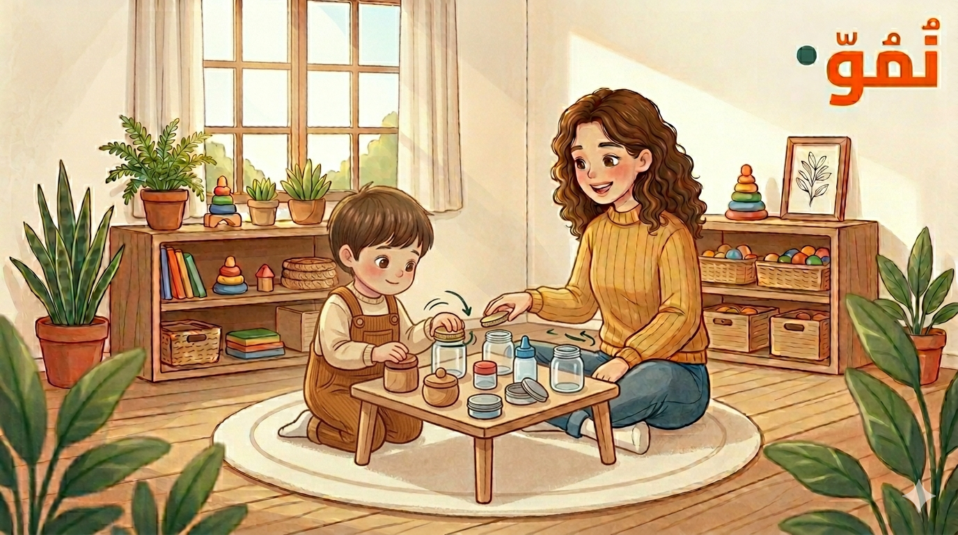 نشاط وظيفي يُطوّر قوة الرسغ ومهارة لف وفتح الأغطية.